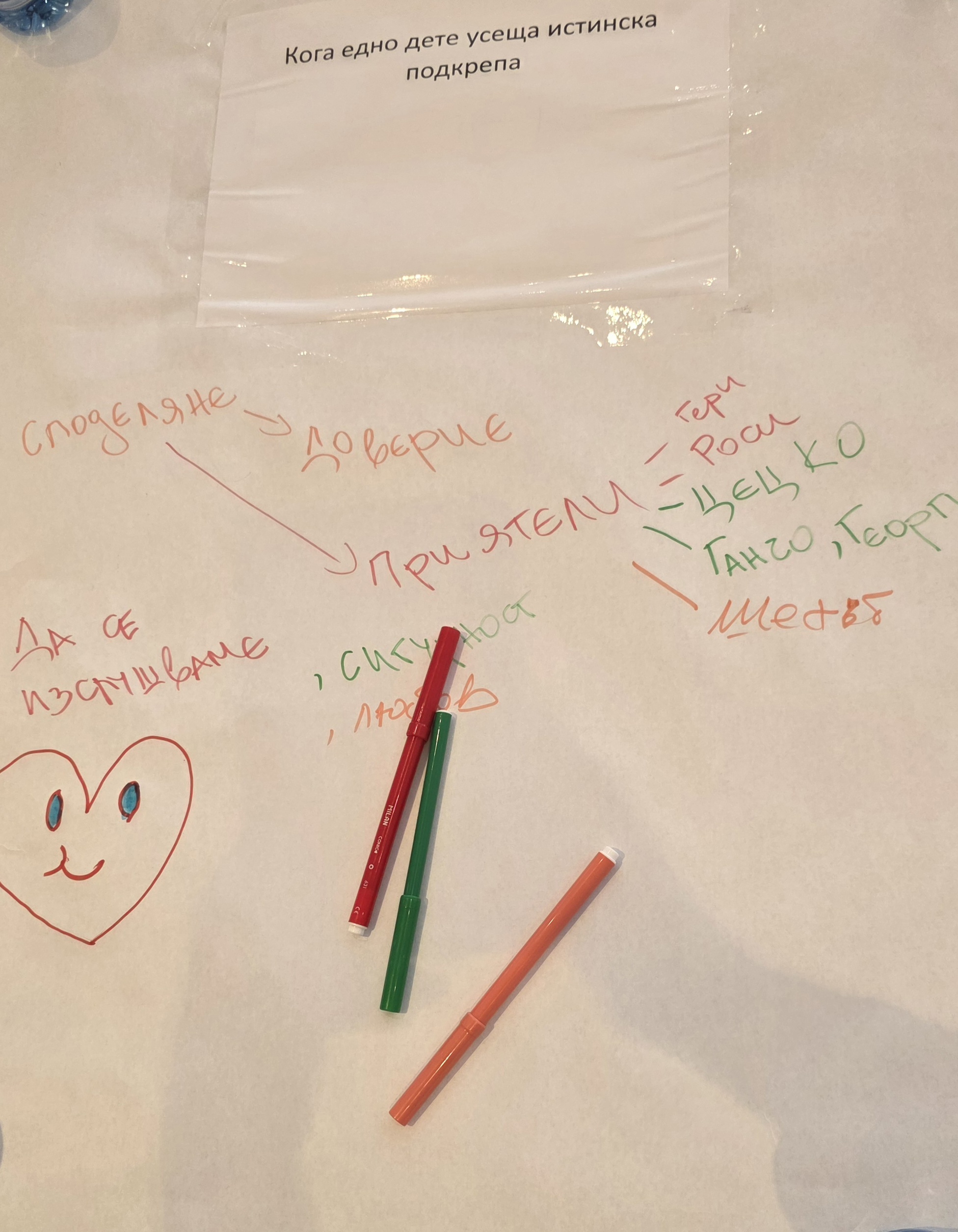 During the meeting, children and adults worked together, drew pictures, and answered questions such as: What is important to you but is often overlooked? When does a child feel truly supported? How can we make children's participation even stronger? And what do you want to say—here and now?